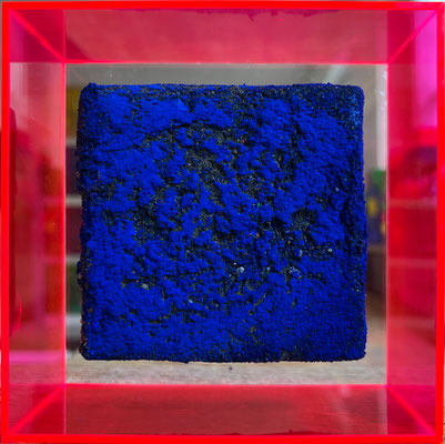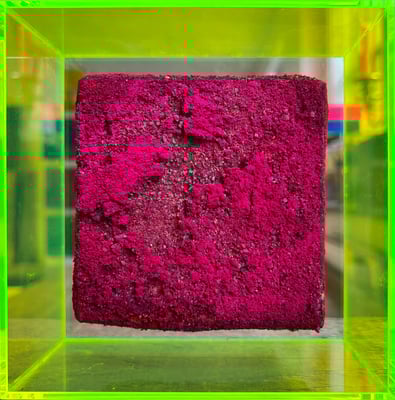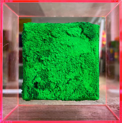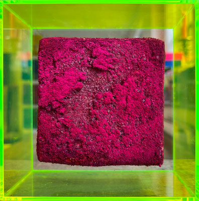 "BILDERBROCKEN" 2024 15 x 15 Acrylfarbe mit Sand und Pigment auf Leinwand im Neonacrylrahmen