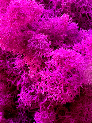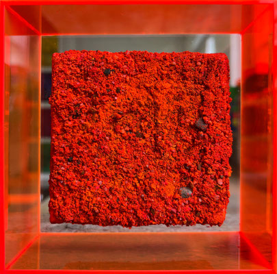 "Pompom" 2024 20 x 20 Mit Pigment gefärbtes Islandmoosblock auf Leinwand (verschiedene Farben)