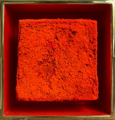 "BILDERBROCKEN" 2024 15 x 15 Acrylfarbe mit Sand und Pigment auf Leinwand im vergoldetem Holzrahmen